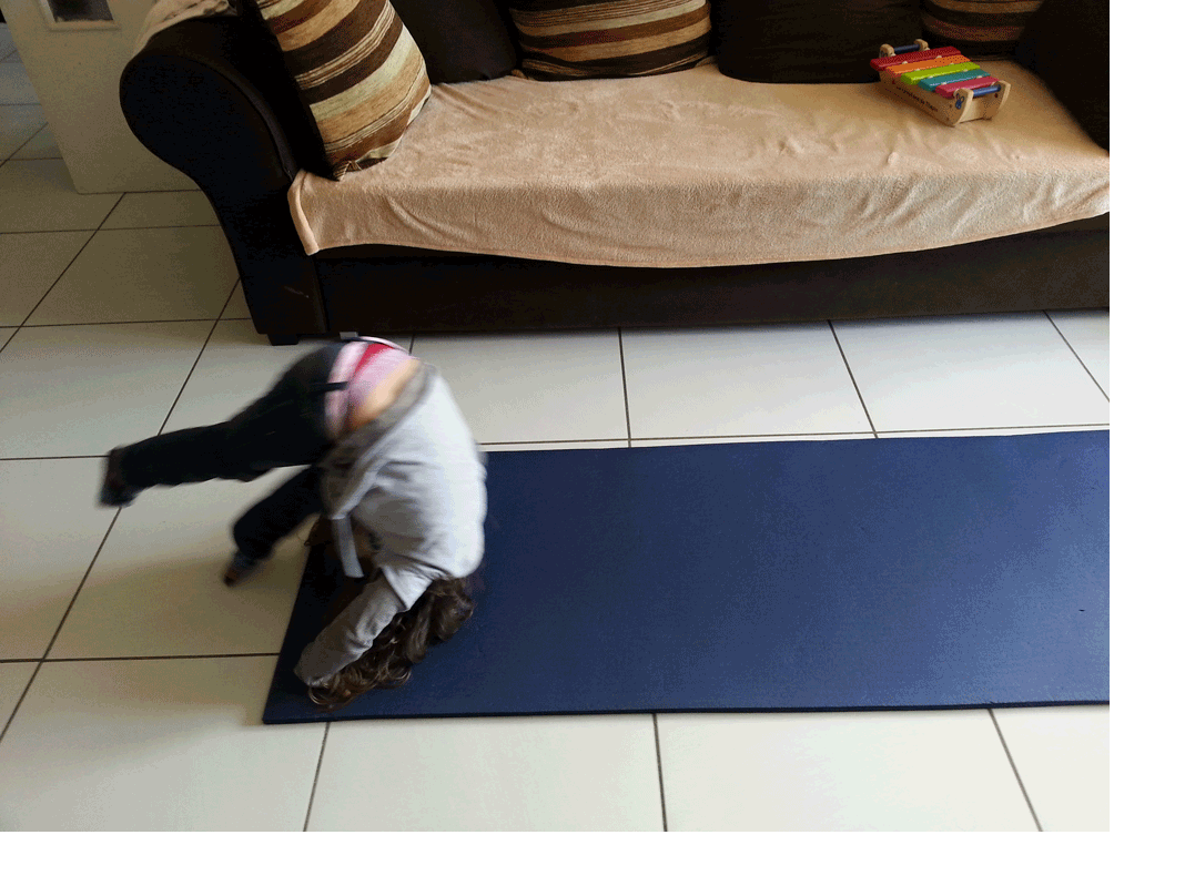 Ce matin il faisait toujours froid et gris à Grenoble du coup pour se défouler un peu ma fille et moi avons appris à miss L à faire des roulades en avant :)