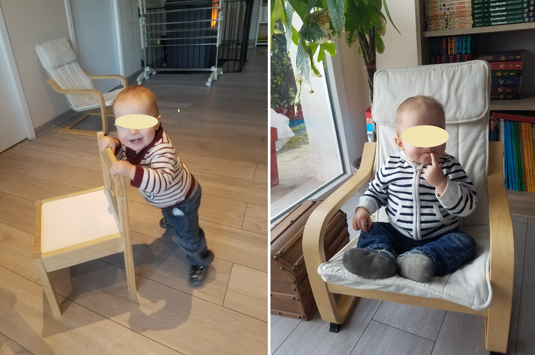 "Hey nounou, je me déplace tranquilou avec les petites chaises et je sais grimper tout seul sur le petit fauteuil !!! Et je suis trop fier de moi ;) "